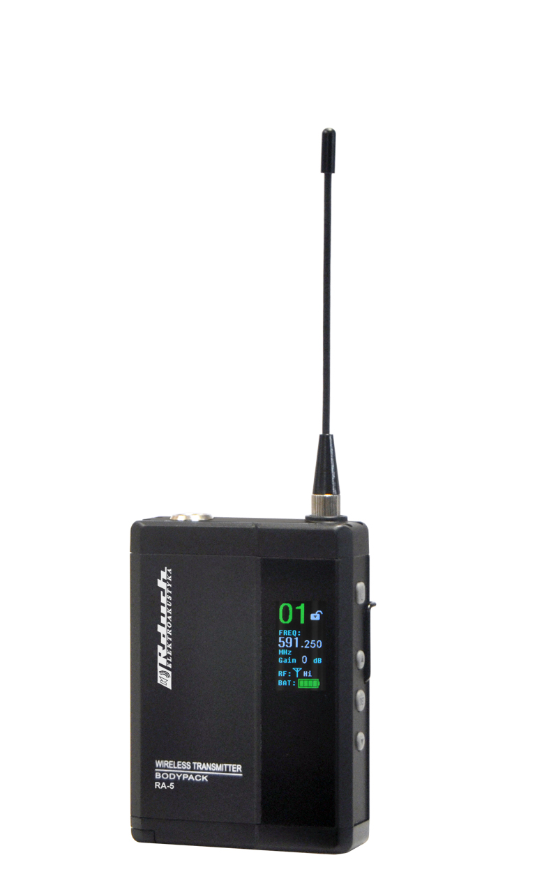 Nowoczesna seria zestawów bezprzewodowych RA-5D została opracowana z myślą o szerokim zastosowaniu w dużych obiektach, katedrach, kościołach, a także na scenie. Zestaw ten działa w systemie “True Diversity” opartym na najnowszej technologii transmisji sygnału UHF, gwarantując wysoką jakość i czystość przesyłanego dźwięku, jednocześnie eliminując możliwość utraty sygnału nawet na znacznych odległościach. Jego duża odporność na zakłócenia umożliwia korzystanie z jednego zakresu częstotliwości przez równoczesne użycie nawet do 20 zestawów.
