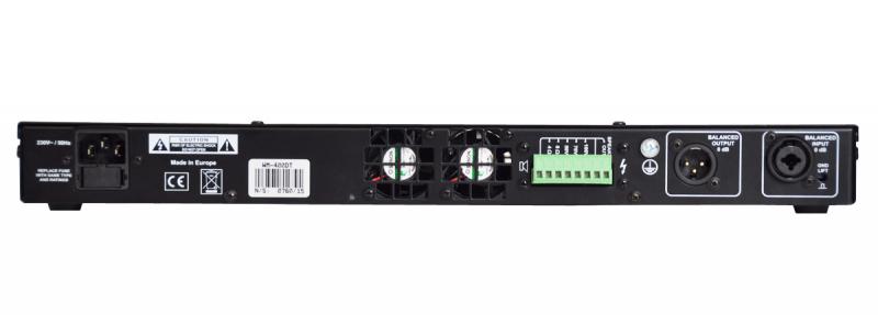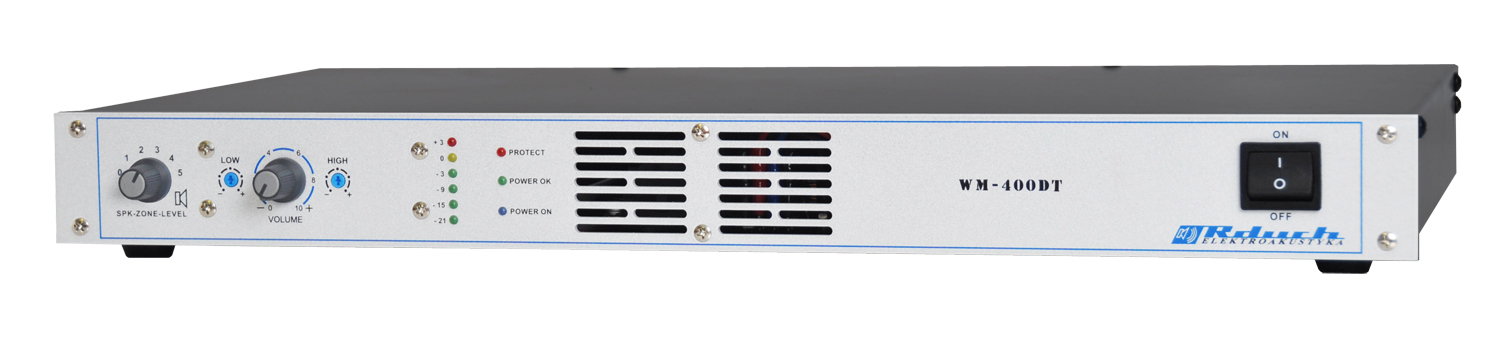Wzmacniacze WM-DT wyposażone są w końcówkę mocy w klasie D. Wzmacniacz posiada wyjście transformatorowe symetryczne o napięciach 100V,70V i 8Ω. W wyposażeniu wzmacniacza są wejścia symetryczne 0dB i +6dB, wyjście 0dB, regulację wzmocnienia, regulację sopranów i basów, limiter oraz sześciostopniowy wskaźnik wysterowania. Wzmacniacz posiada gniazdo typu Combo, które umożliwia podłączenie sygnału za pomocą przewodu z wtykiem typu XLR lub typu Jack. Nowoczesna konstrukcja wzmacniaczy WM pozwala na współpracę z innymi wzmacniaczami i mikserami w celu zwiększenia mocy całej instalacji nagłośnieniowej.